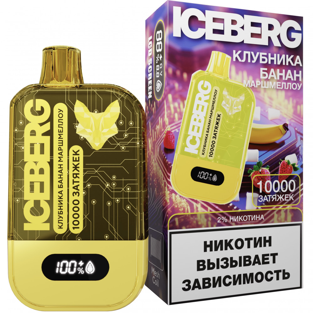 Электронная сигарета ICEBERG XXL 10000 Клубника банан маршмеллоу - купить в Коломне