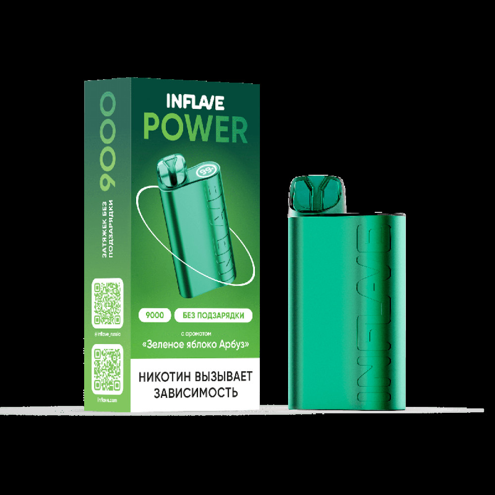 Электронная сигарета INFLAVE POWER 9000 затяжек Зеленое Яблоко Арбуз - купить в Коломне